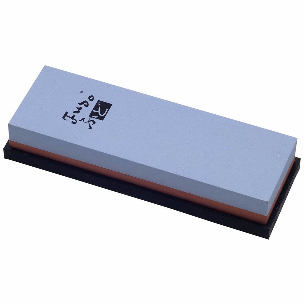 Dieser Kombi-Abziehstein wird auf einem rutschfesten Gummisockel geliefert.