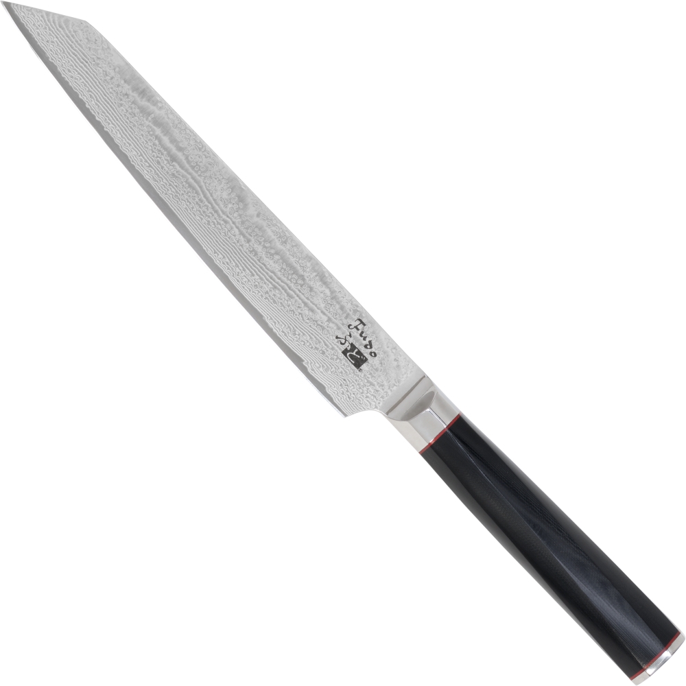 Seit über 1000 Jahren werden in Fernost hochwertige Klingen geschmiedet. Noch heute setzen die Meister diese alte Tradition der Klingenfertigung fort. Mit 67 Lagen gehört diese Serie zu den Spitzenerzeugnissen am Markt. Als Griffmaterial wird der hygienisch unbedenkliche und äußerst robuste G10 verwendet. Der Kern der Klinge besteht aus VG 10 Stahl mit einer Rockwellhärte von ca. 60 Grad. Auf beiden Seiten sind jeweils 33 stabilisierende Lagen Damaststahl aufgeschmiedet. Die Damastklinge bietet höchste Schneidleistung bei größtmöglicher Flexibilität.