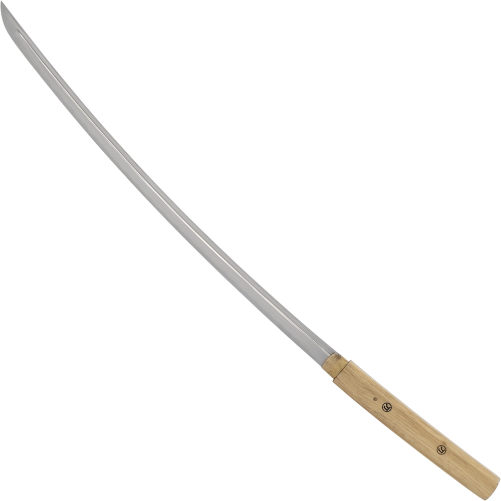 - Mit langer Angel, welche mit 2 Bambusstiften (Mekugi) im Griff fixiert ist.